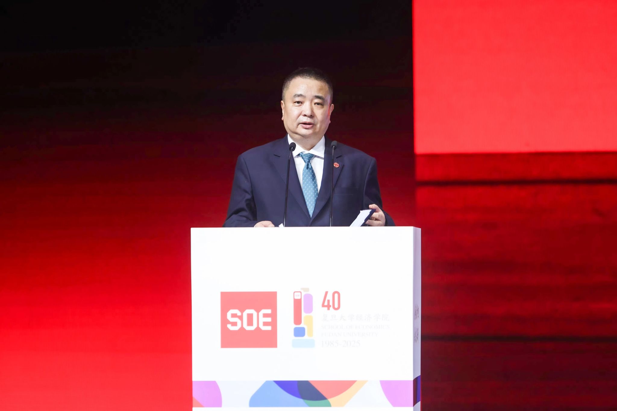 恢复建院的四十年与中国改革开放伟大进程同行。从蒋学模、张薰华等老一辈先生为国家改革提供理论支撑,到新时代以张军教授为代表的学者发出中国经济学的国际强音,复旦经院人始终瞄准国家发展最前沿。他对学院未来发展提出三点期待:一是更加长远谋划发展,打造中国经济学科的主峰;二是更加深入推进教学改革,培养更多“经世济民”的大师与大才;三是更加高水平推进国际开放合作,在世界舞台赢得更广泛的话语权。