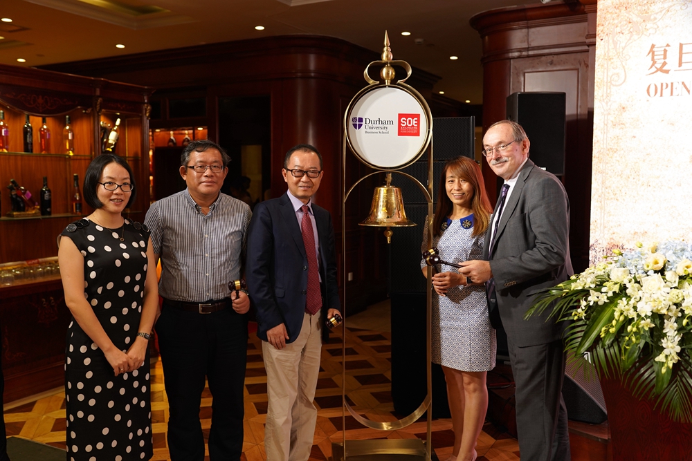院长张军教授与杜伦大学商学院中国发展事务主任Rob Dixon教授分别致辞,强调了博士研究能够带给大家的“思想的力量”,希望通学员们能够通过本项目的获取博士层面的学会独立思考和研究问题的能力,并祝贺2018级的新生开始人生中新一阶段的学习历程。随后,复旦经院与杜伦商学院的领导及项目负责人共同敲响了代表新学期开学的钟声。