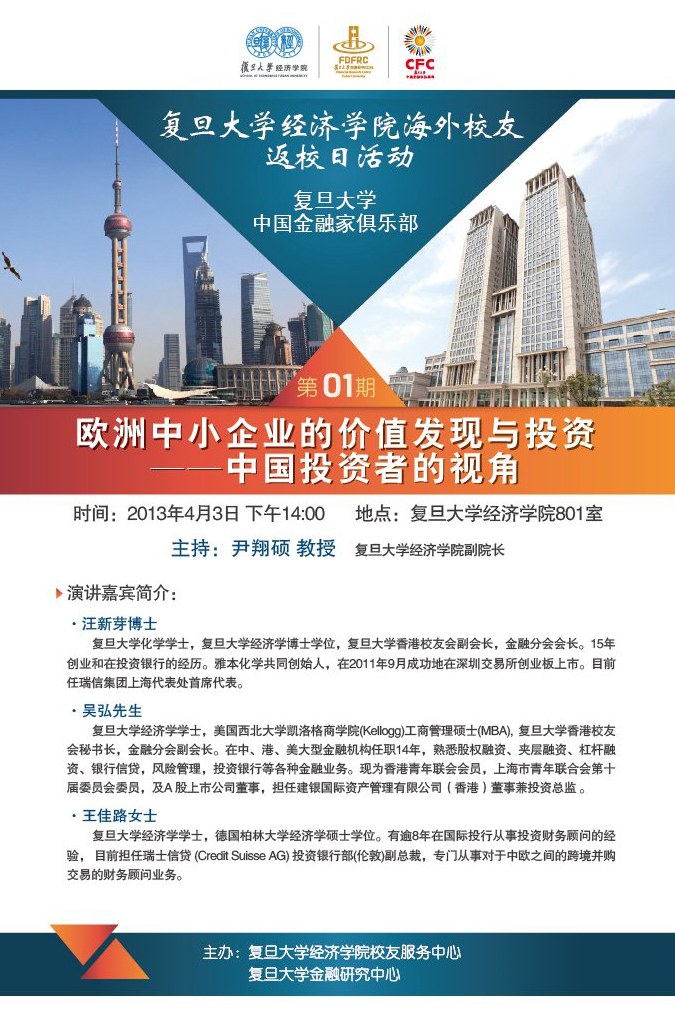 演讲主题:欧洲中小企业的价值发现与投资——中国投资者的视角