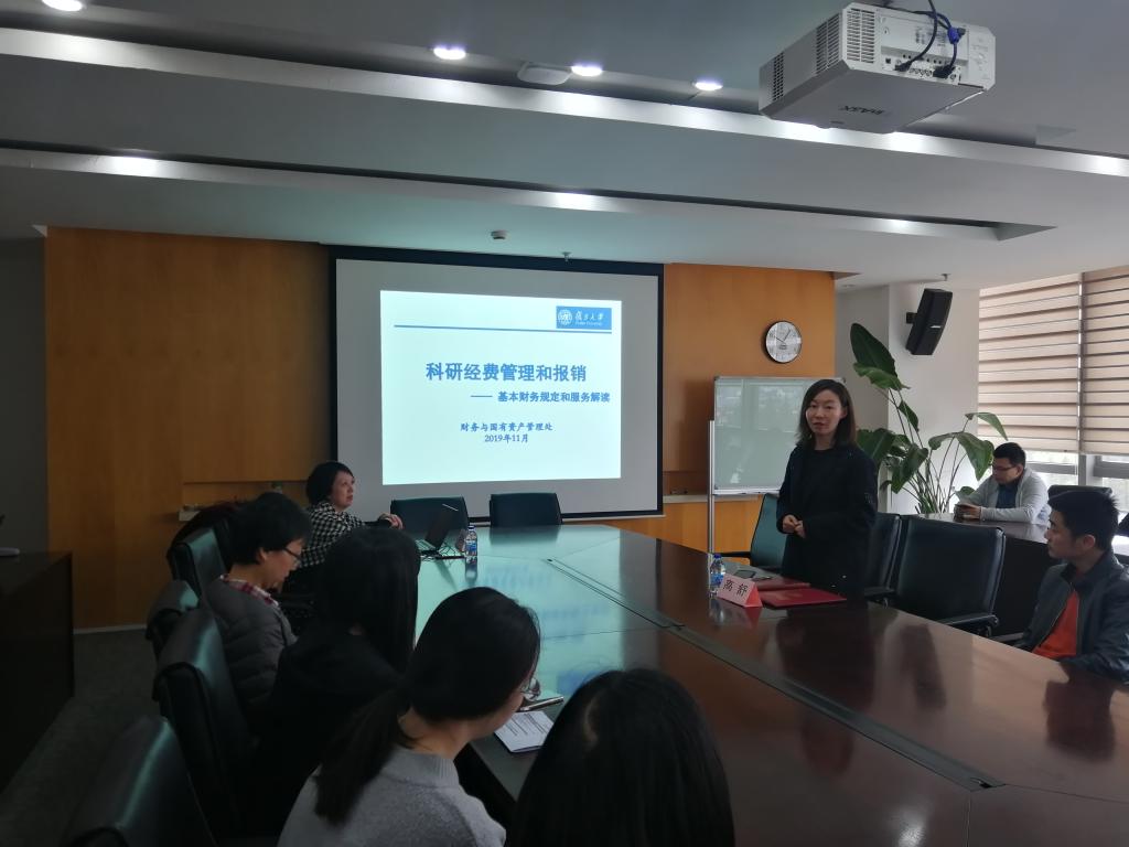 教师们的建议与意见。接着,庄老师为大家梳理了科研经费的管理流程,为大家提供了财务处科研经费管理办公室的电话与邮件地址,以便于及时解决大家在处理相关问题时产生的各种问题。然后,庄老师总结了行政老师所需要了解的科研经费管理要点,包括:如何查询自己的科研项目经费、结余经费的管理、科技成果转化的分配以及绩效发放的流程等,并以截图的形式为大家展示了网站上的实际操作,实实在在的为教师们日常工作中遇到的有关困难提供了解决办法。