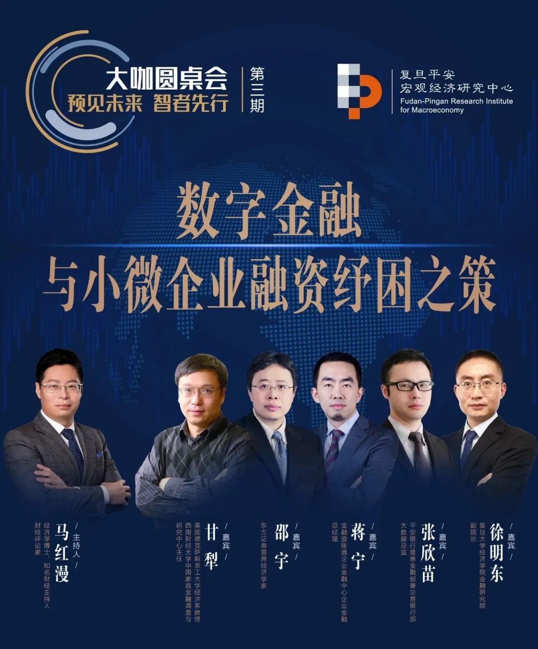 8月31日下午,由复旦平安宏观经济研究中心主办、平安科技协办的“预见未来,智者先行”大咖圆桌会第三期圆满举行,本次会议主题为“数字金融与小微企业融资纾困之策”。出席会议的嘉宾有美国德克萨斯农工大学经济系教授、西南财经大学中国家庭金融调查与研究中心主任甘犁,东方证券首席经济学家邵宇,金融壹账通企业金融中心企业金融总经理蒋宁,平安银行惠普金融部兼交易银行部大数据总监张欣苗,无码流出