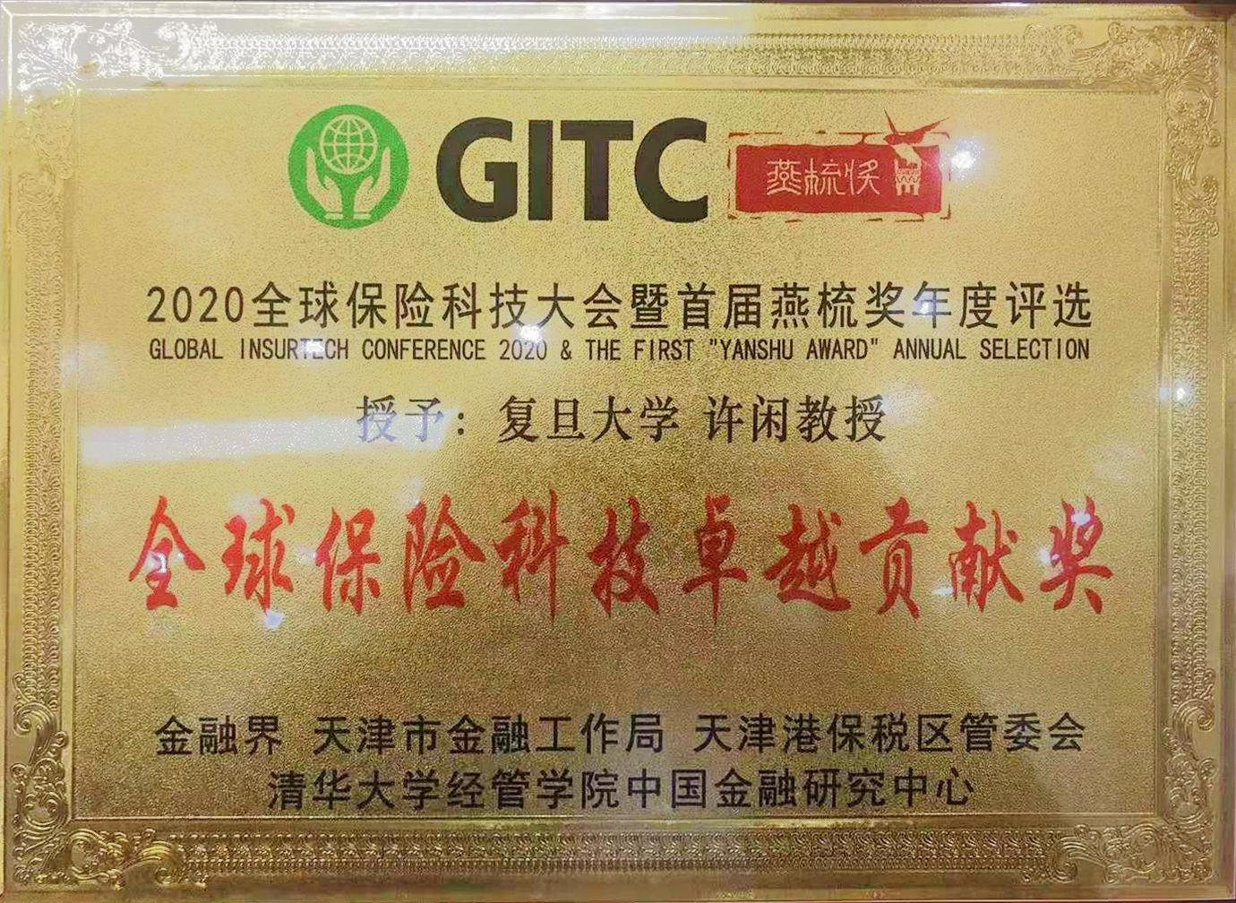 许闲教授喜获全球保险科技卓越贡献奖!