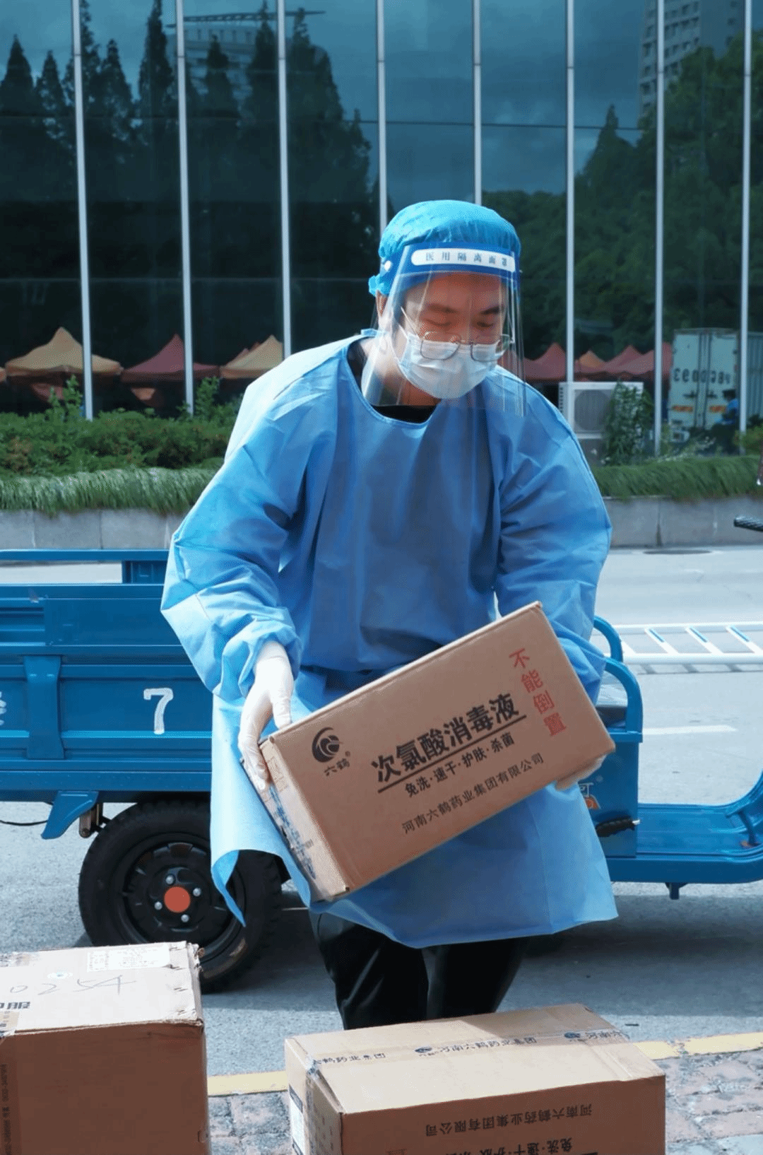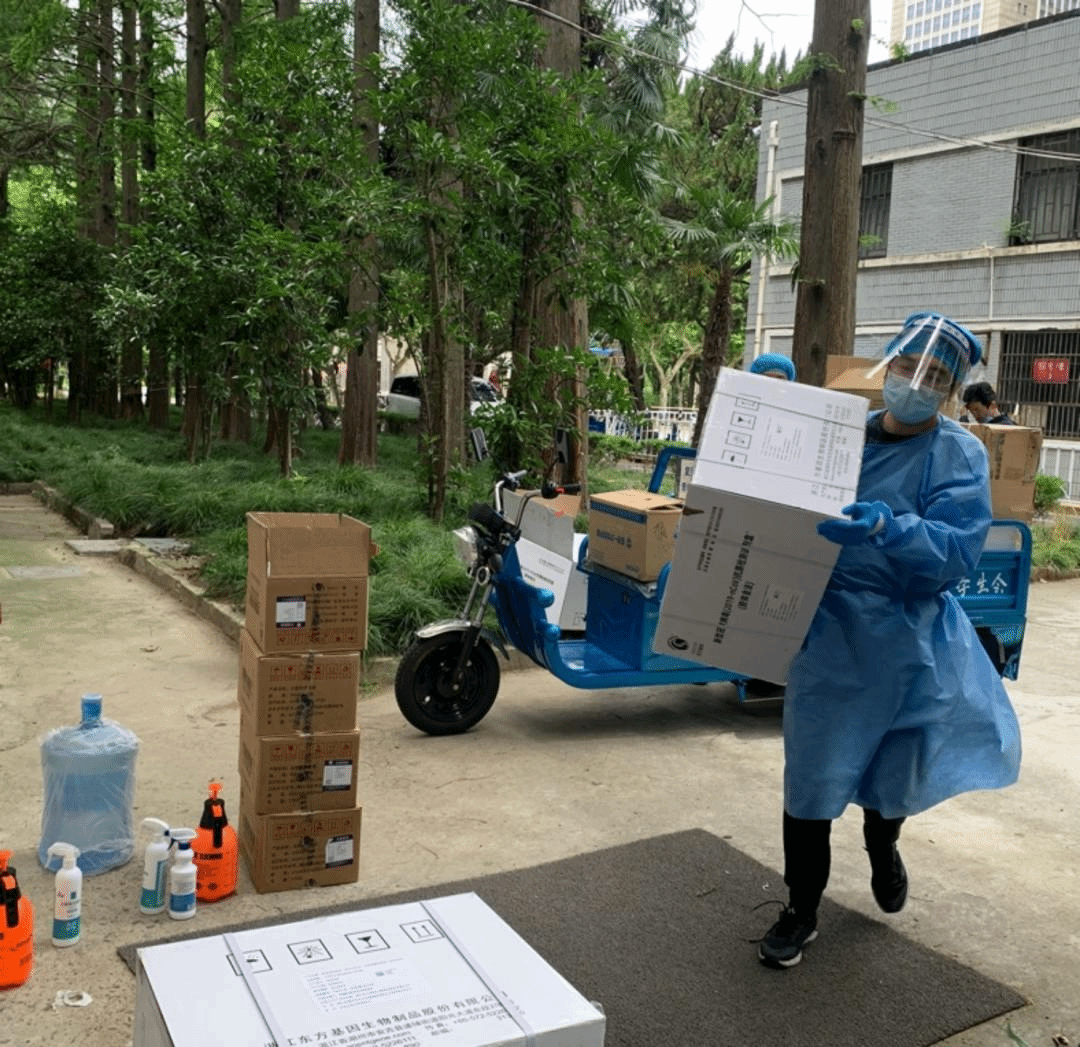 好在本部团队战友经验丰富,经过几天的学习,我迅速转换了角色,加入到战斗队伍中来。所谓战斗队伍,初期不过仅仅由四五位老师组成。但是他们个个都是精兵强将,一人就是一支队伍!每次几万只的抗原,从点货、运送到分发至各楼栋,一辆电三轮,两位老师一上午就可以搞定。虽然来回需要几趟,但都不在话下而且风雨无阻。