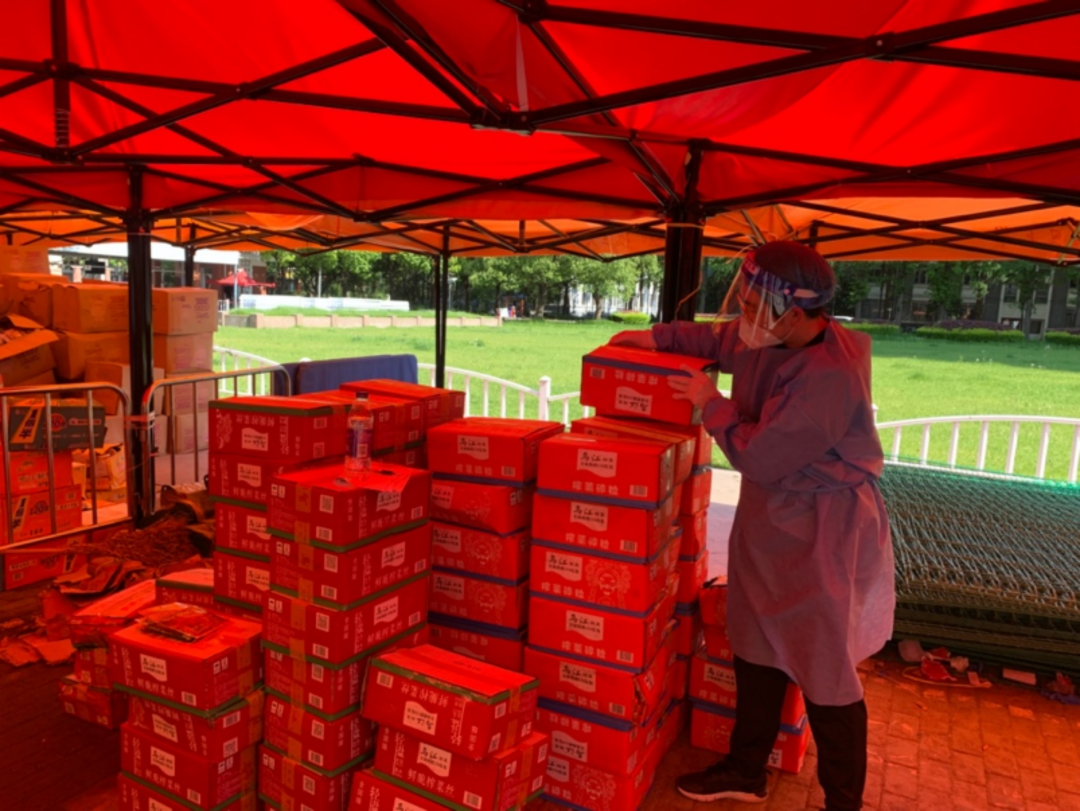 除了防疫物资以外,随着物流的逐步畅通,社会各地捐赠的各类生活物资也陆续抵达本部。从四月中下旬的苹果,到包括黄老五、方便面、卷纸、水笔、番茄、榨菜丝、火腿肠、饼干、蛋糕、饮料等等在内的物资陆续送到了同学们手中。近期由爱心企业捐赠的一箱箱水果也在源源不断地收发。这一批批物资都凝结着一群志愿者同学和老师的辛勤付出,我也为自己是其中的一员而深感自豪。从调度好南区、北区、政本东的物资,分配好政本东各楼宇的物资数量,再到亲自开着电三轮给各楼宇送货,我也在不断学习中成长和锻炼起来。