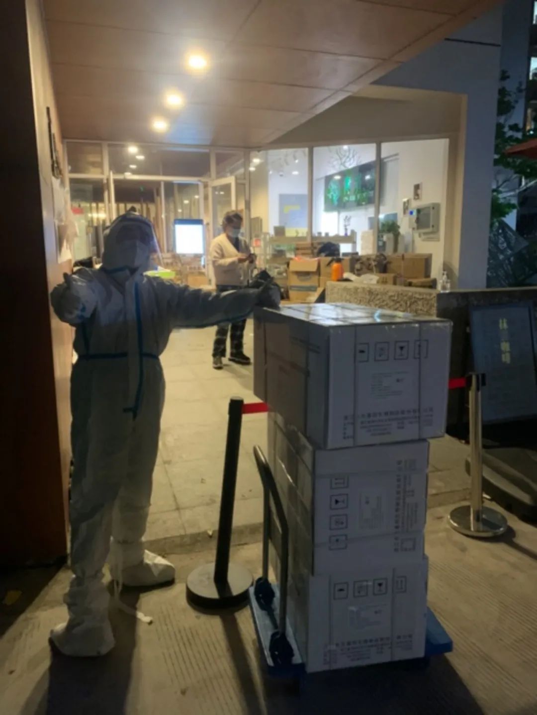 虽然汗水顺着防护服流了下来,回到亚青办公室已经是浑身湿透,但我知道所有学生能按时准点地顺利做好抗原,这份辛苦就是值得的。作为73号楼楼长,我还负责整栋楼的一日三餐送餐工作,因此还获得了“衣食父母”的雅号。
