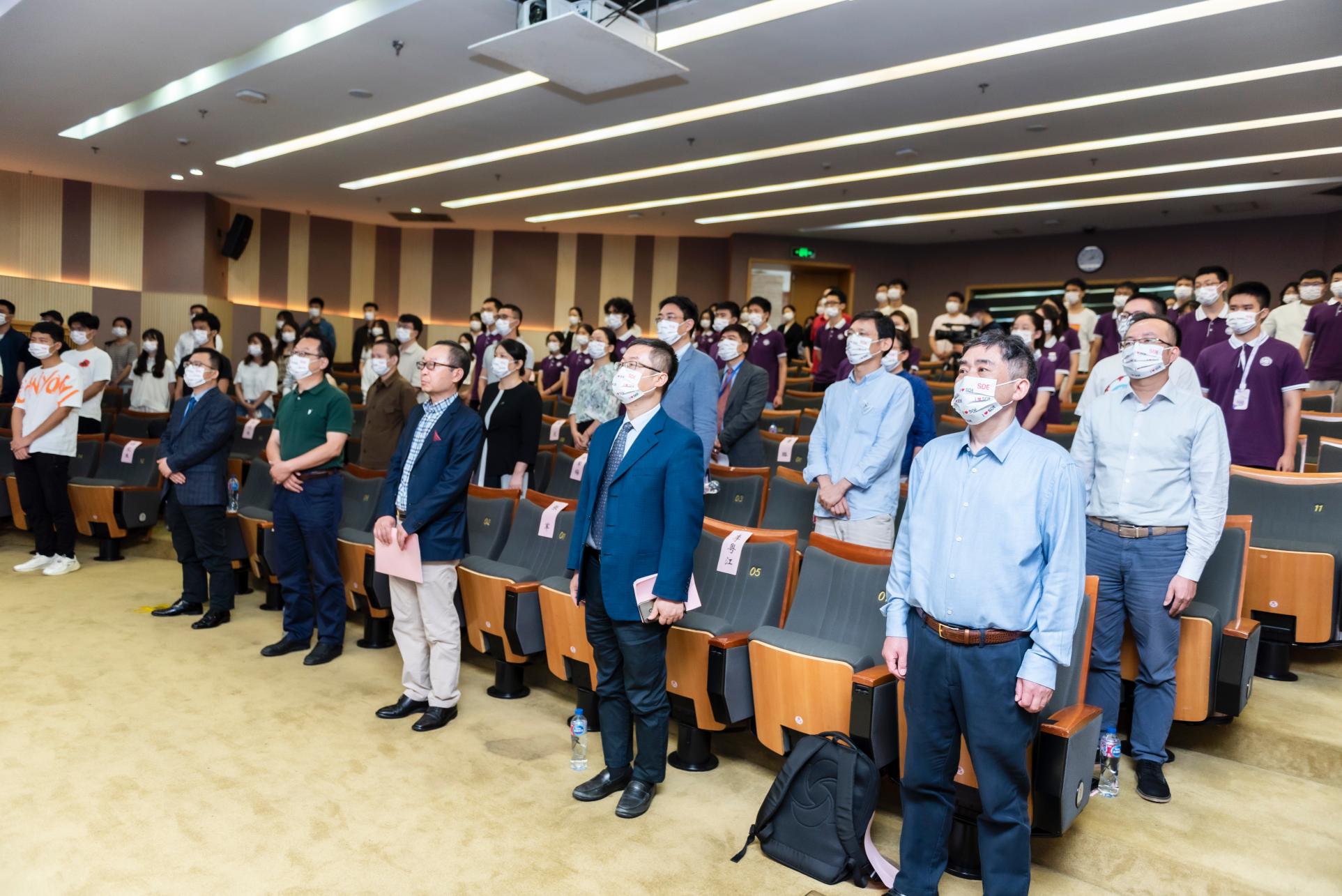 党政领导、各系所中心教师代表、学院行政教师代表、2022级新生辅导员出席开学典礼。根据疫情防控要求,学院833名本科生和研究生新生通过参加主会场、分会场和观看直播的方式共同参加了开学典礼。