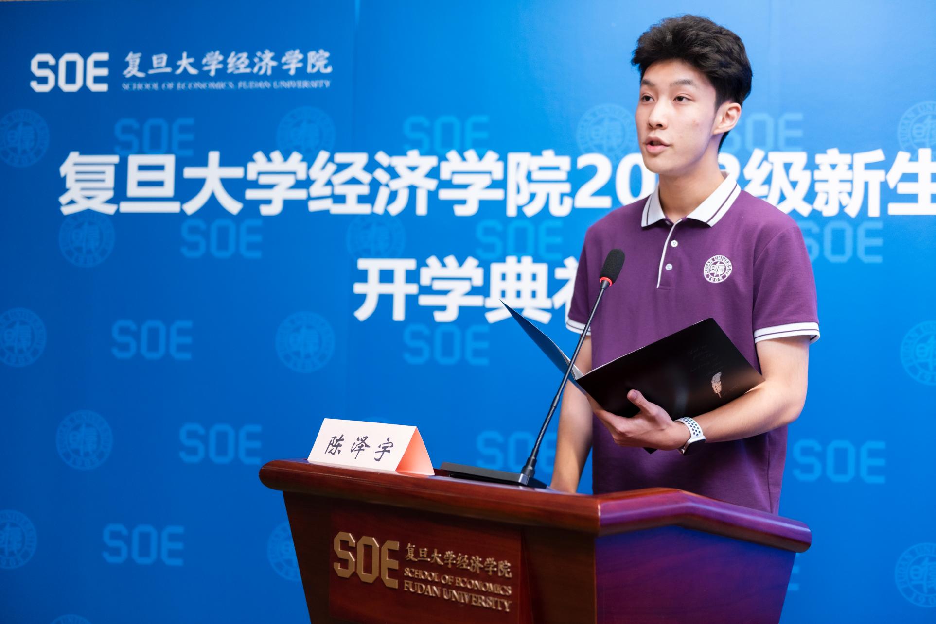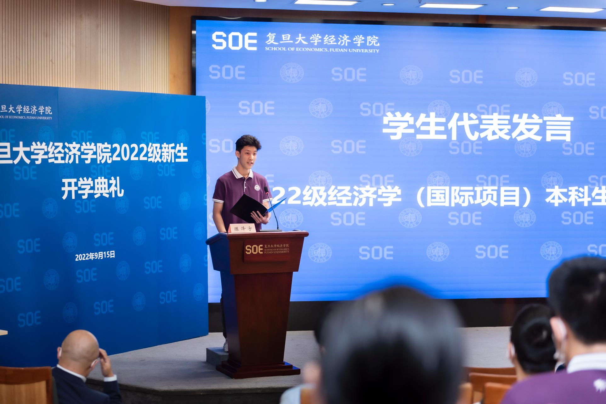 大金报告厅隆重举行。根据疫情防控要求,学院833名本科生和研究生新生通过参加主会场、分会场和观看直播的方式共同参加了开学典礼。2022级经济学(国际项目)陈泽宇同学作为本科新生代表,分享了他初见经院所带来的激励和感触,思考作为新时代青年应怀有的抱负和梦想。以下为发言全文: