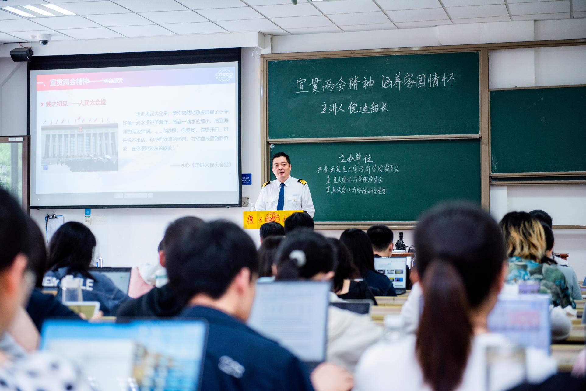 海上工作24年的经验,使得倪迪船长深刻了解海运行业的现状。他向大家分享了海员的生活,细数经历的艰辛与挑战,畅想海运行业的前景与未来。倪迪船长指出,建成海运强国、贸易强国,需要一代又一代的青年人为之奋斗和努力。他号召青年人“恪守忠诚干净,笃行勇于担当”,培养家国情怀,树立远大志向。