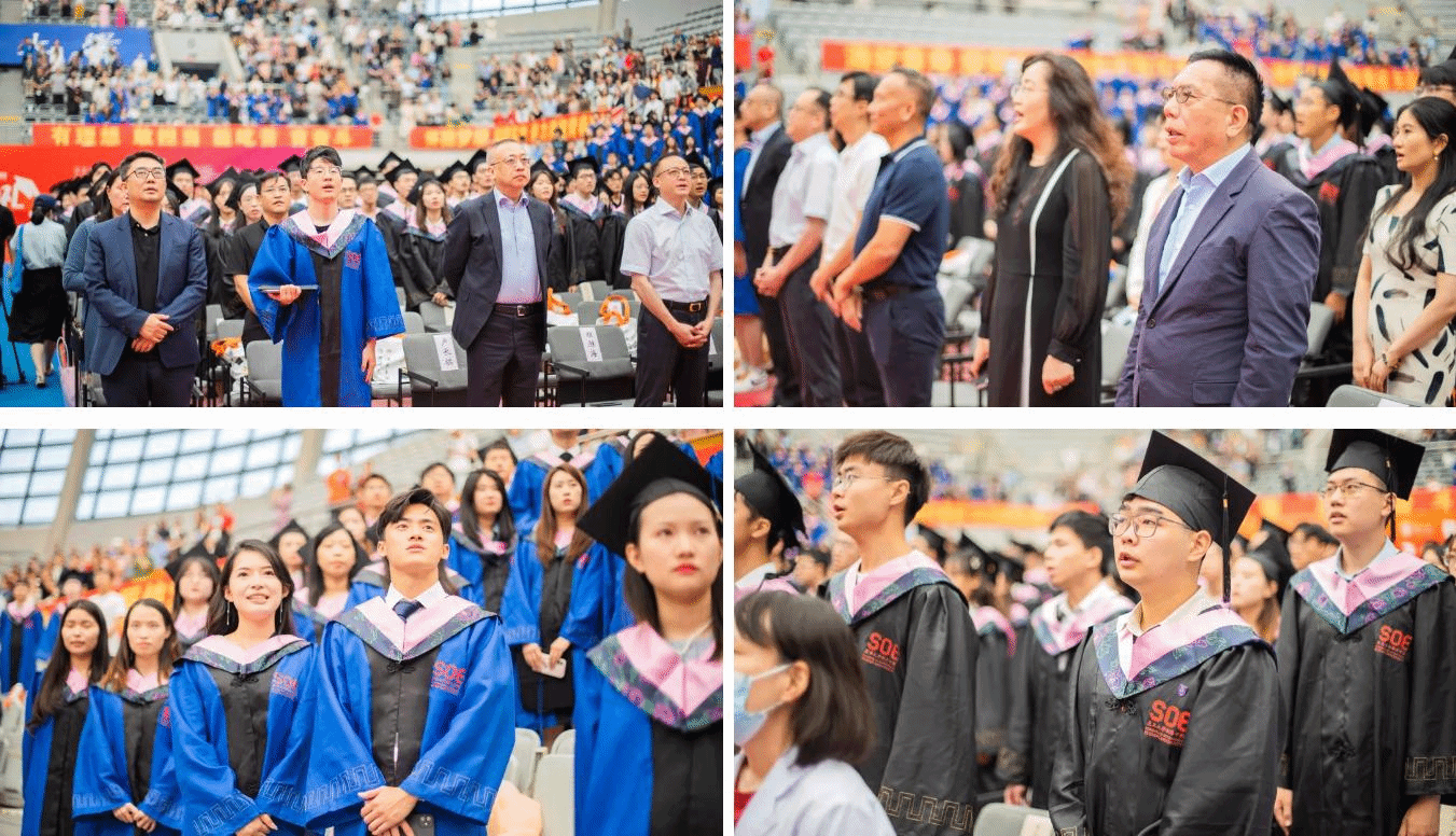 上午九时,庄严的国歌拉开了典礼的序幕,国旗缓缓升起。伴随着一段毕业纪念短片,典礼进入第一个环节。