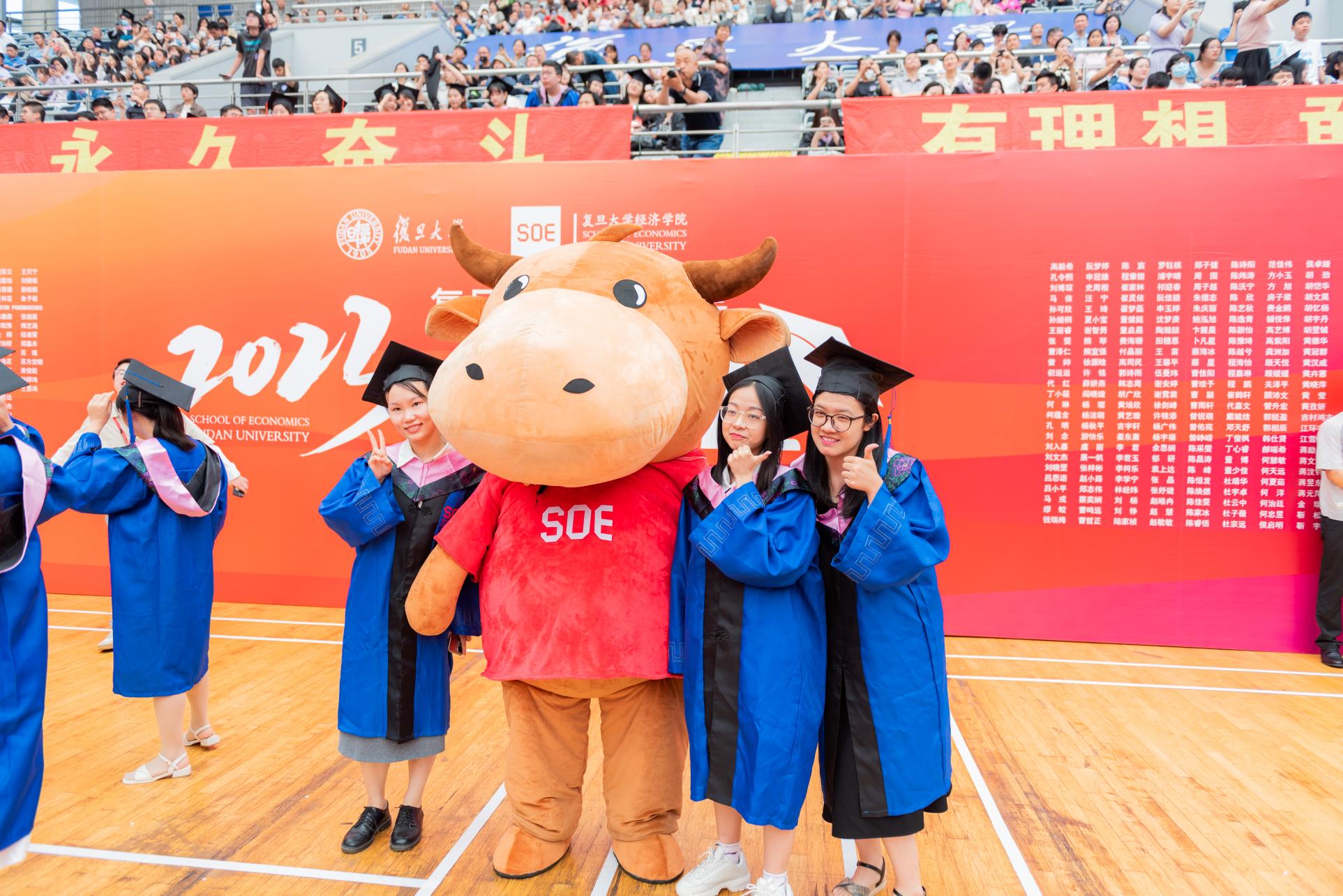 拨穗进行时,两只活泼可爱的经院牛也出现在2023届毕业生姓名墙前,毕业生们纷纷热情与经院牛合影留念。