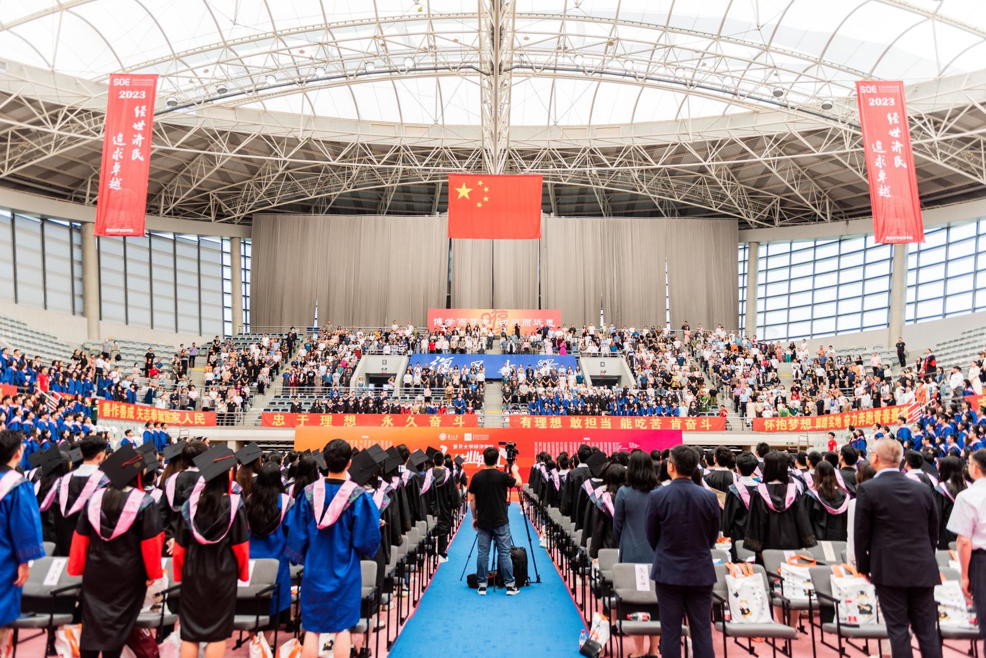 院长张军、党委书记李粤江以及学院党政领导、学位委员会委员、教师代表出席毕业典礼。校外联处处长刘莉受邀参加毕业典礼。学院2023届全体毕业生,2020、2021和2022届毕业生代表,辅导员代表,家长和亲友共同参加典礼。