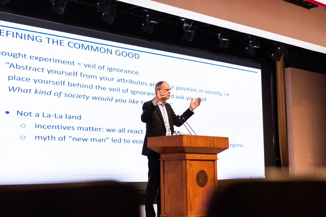 “不同的人对共同利益(common good)定义可能完全不同。”梯若尔教授指出,在定义共同利益时需要设法消除人们内在的主观判断。罗尔斯“无知之幕”(the veil of ignorance)的思想实验可以较好地解决这个问题:假如我不知道自己是男是女,身体状态好坏,家庭富裕或贫穷,受过良好教育还是目不识丁等等,那么我会选择在什么样的社会生活呢?梯若尔教授认为一个追求共同利益的社会至少应该包含三个方面的制度设计:公平的法制环境以保障经济有效率地运行,良好的保险制度以免个体遭受不幸,以及允许人们在种族、信仰等方面存在差异的社会规范。
