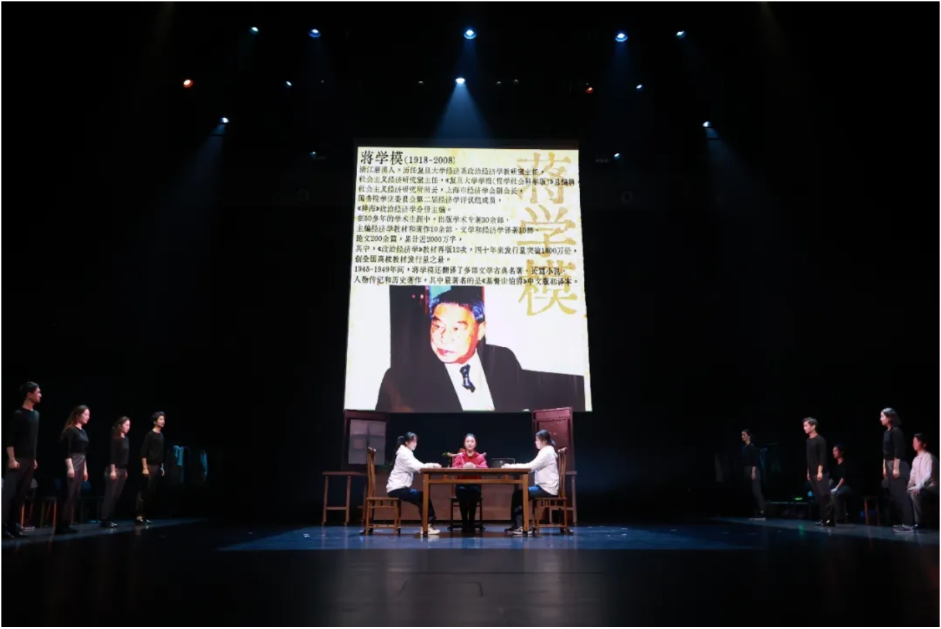 一纸剧本历经无数次的打磨,一幕幕的排演仿佛将历史冲刷千遍。一部大师剧,在复旦学子的演绎下重现过去的时光。2022级经济学专业国际项目(UIPE)班本科生乔煜尧出演过话剧初版,他说道:“参与大师剧《蒋学模》的演出,不仅是对艺术的追求,更是一种文化传承的责任。每一位参演的演员,都带着对角色的深刻理解和对历史的尊重,将这份重要的文化遗产生动地呈现给观众。他们的初心,可能是出于对戏剧表演的热爱,也可能是希望通过自己的努力,让更多人了解并重视我们学院的历史与文化。在舞台上的每一分付出,都是对自我挑战的超越,也是对文化传承的最好诠释。”