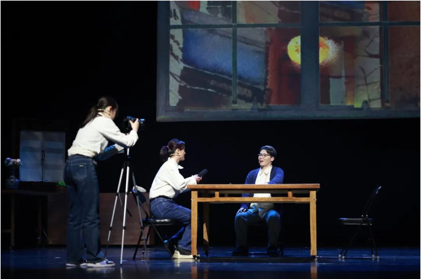 大师剧《蒋学模》的叙事结构大胆新奇,不仅有现代与过去的时空变化,更有梦境和现实的交错重叠。伴随着熟悉的上课铃声,大幕拉开,读书会上的同学开始对蒋学模先生产生好奇,四幕大戏随之将蒋老先生的一生呈现给观众。