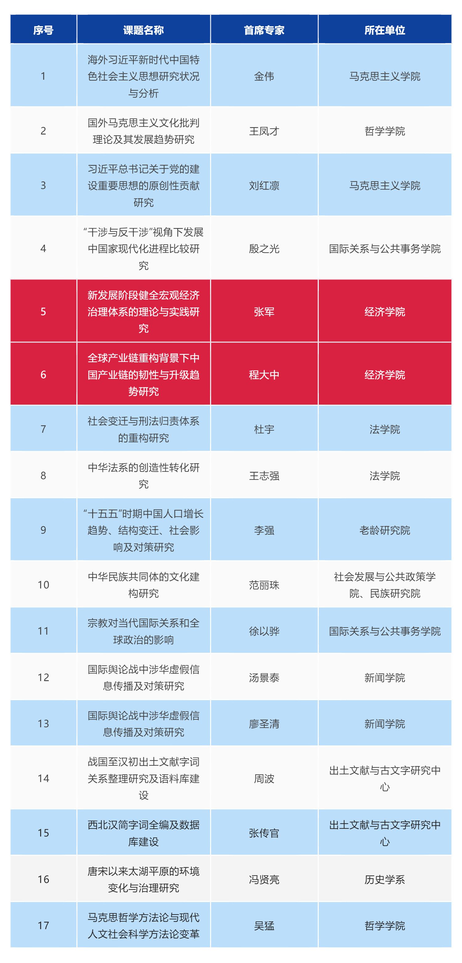 国家社科基金重大项目是我国哲学社会科学领域层次最高、资助力度最大、权威性最强的项目,代表国内最高研究水平,是衡量高校哲学社会科学发展水平和科研实力的重要指标。