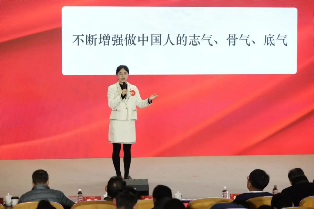 在决赛中,汤潮面临的是一场现场的理论宣讲挑战。她的宣讲主题是“不断增强做中国人的志气、骨气、底气”。