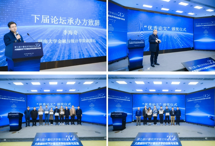 12 月 24 日中午,论坛举行闭幕式。湖南大学金融与统计学院副院长李海奇教授介绍了下一届论坛的筹备情况,欢迎各位学者前往湖南大学参加下一届论坛。闭幕式上还举行了优秀论文颁奖仪式。经过严格评审,本次论坛共评选出 9 篇优秀论文,其中 5 篇英文文章,4 篇中文文章。这些论文涵盖了计量经济学的多个领域,展现了学者们在理论研究和应用探索方面的创新成果,为学科发展注入了新的活力。