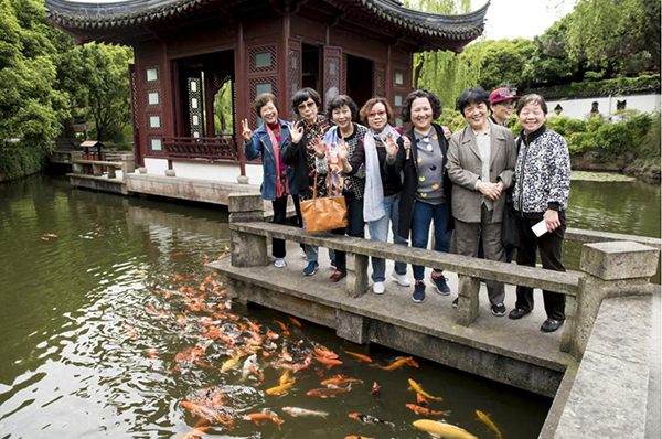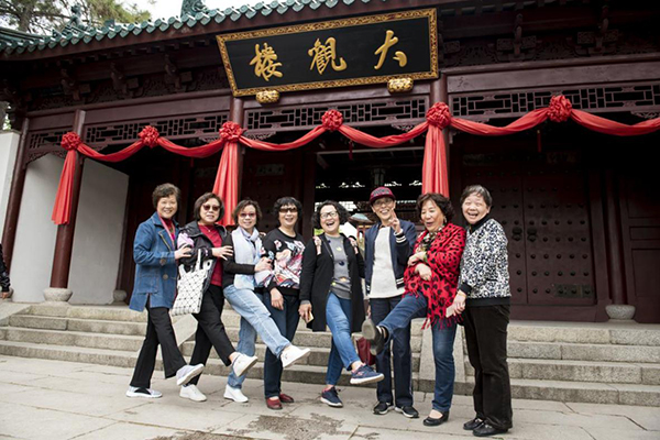 在大观园里,亭台楼阁错落有致,湖光山色相映成趣。老师们精神矍铄,游兴酣畅,一边欣赏着优美的风景,一边跟随解说员参观了“怡红院”,“梨香院”,“潇湘馆”、“蘅芜院”、“稻香村”等建筑景点。看着眼前一个个红楼人物的生活场景的再现,老师们也相互谈论着红楼著作里描写的意境和现实里的感受,在遇到独特美景时,大家会不约而同停下脚步,热情地拍照留影,而女老师们摆的pose,堪比“金陵十二钗”中的古典美女!
