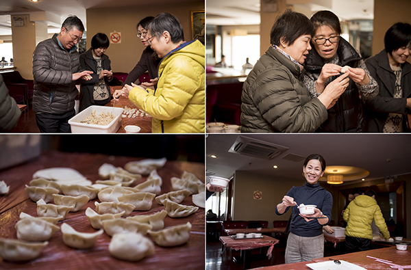 10:30,大家陆陆续续走进了咖啡馆,脸上洋溢着快乐、放松的神情。大家一到场,就被桌子上整齐的饺子皮和美味的饺子馅吸引了,不会包饺子的老师也跃跃欲试,会包饺子的老师则当仁不让当起了“大师傅”。大家一边包饺子,一边交流着美食、育儿、家庭关系等。累了,便坐到旁边品果汁,摆果盘,尽情享受着难得的放松时刻。