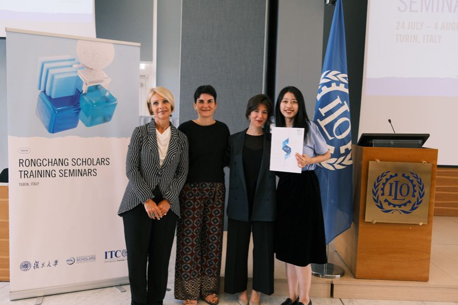 经院“经世致用”理念长期浸润李蔚的学术志趣,也使她始终关注全球公共议题。2023年,她从全国226名申请者中脱颖而出,成功入选“荣昶学者”全球治理人才培养项目,成为45位获选者之一,获派赴意大利国际劳工组织培训中心。她与来自长三角9所高校的青年学者共同研修全球治理课程,系统汲取可持续发展、多边合作、国际法及区域治理等前沿理论;通过模拟谈判环节锤炼协商能力;并由日内瓦高校教授及联合国官员授课启迪;探访联合国粮农组织、世界粮食计划署、联合国开发计划署,让她对全球议题的复杂性与中国在国际舞台的作用有了更深切的洞察与思考。