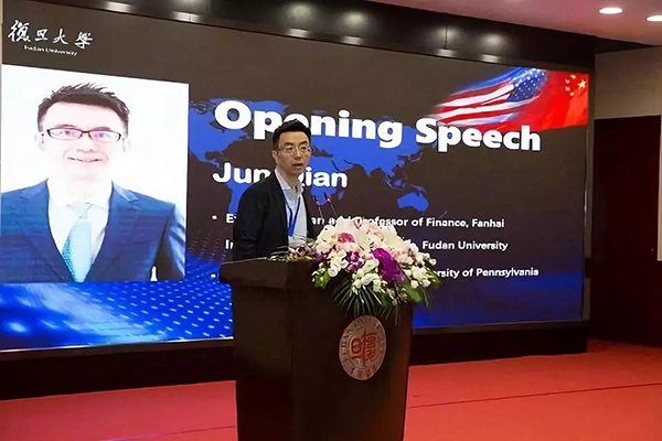 泛海国际金融学院执行院长钱军教授致欢迎辞。复旦-斯坦福中国金融科技与安全研究院执行院长刘庆富教授和南京大学-牛津大学金融创新研究院院长李心丹教授联合主持。