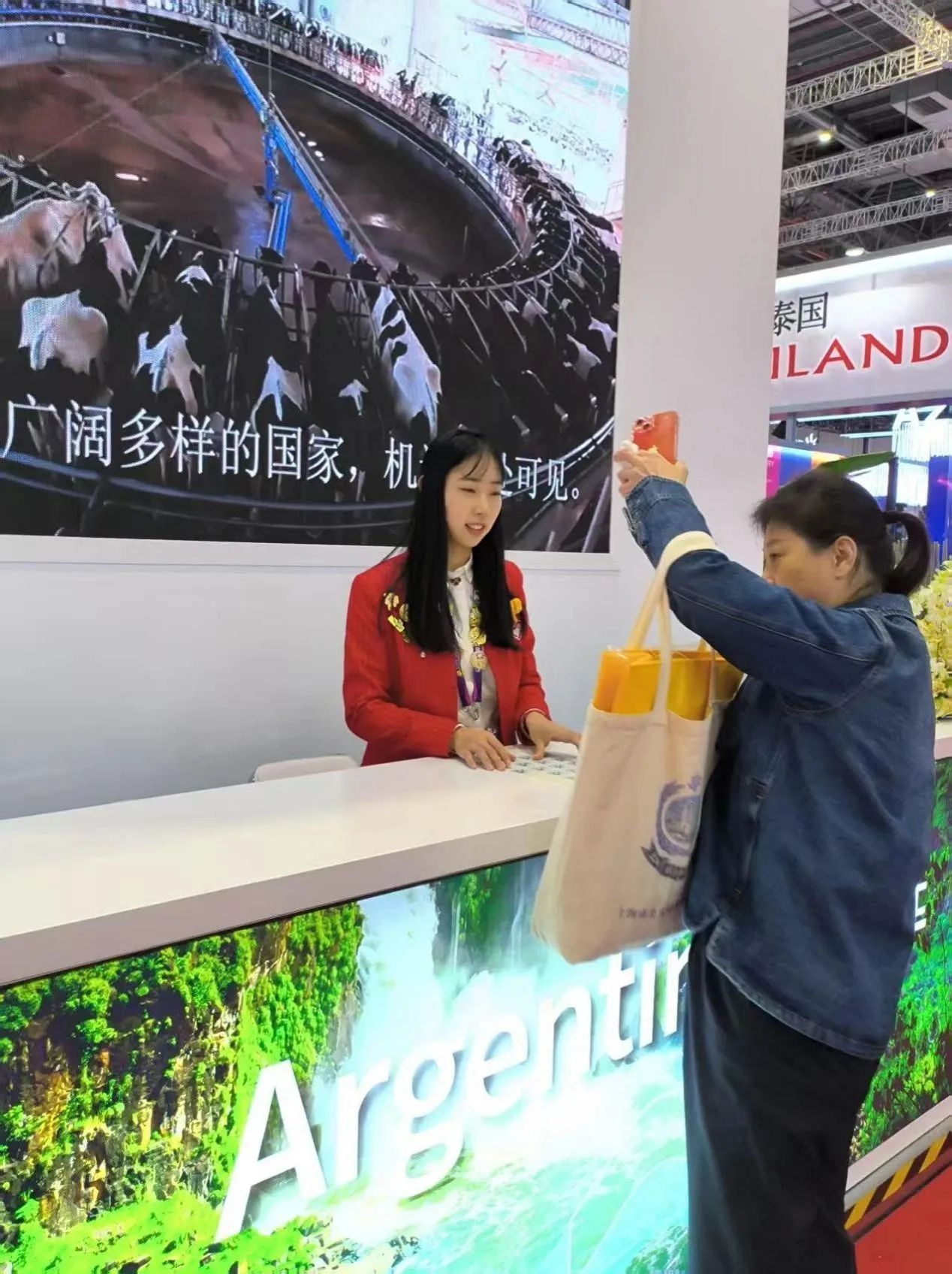 肖瑜婧两次成为进博会的“小叶子”志愿者。在第五届进博会期间,她作为新品发布会的志愿者,在新品发布区协助完成94场全球首发活动,共发布170余件新品。步入研究生阶段,她有幸成为一名国家展展台的志愿者,从新品发布会的台前走向国家展的国际舞台,她常驻阿根廷、阿曼和泰国展台,充当起跨文化交流的桥梁。她以流利的英文和专业为桥,让每个展台成为观众感知“人类命运共同体”的生动窗口。