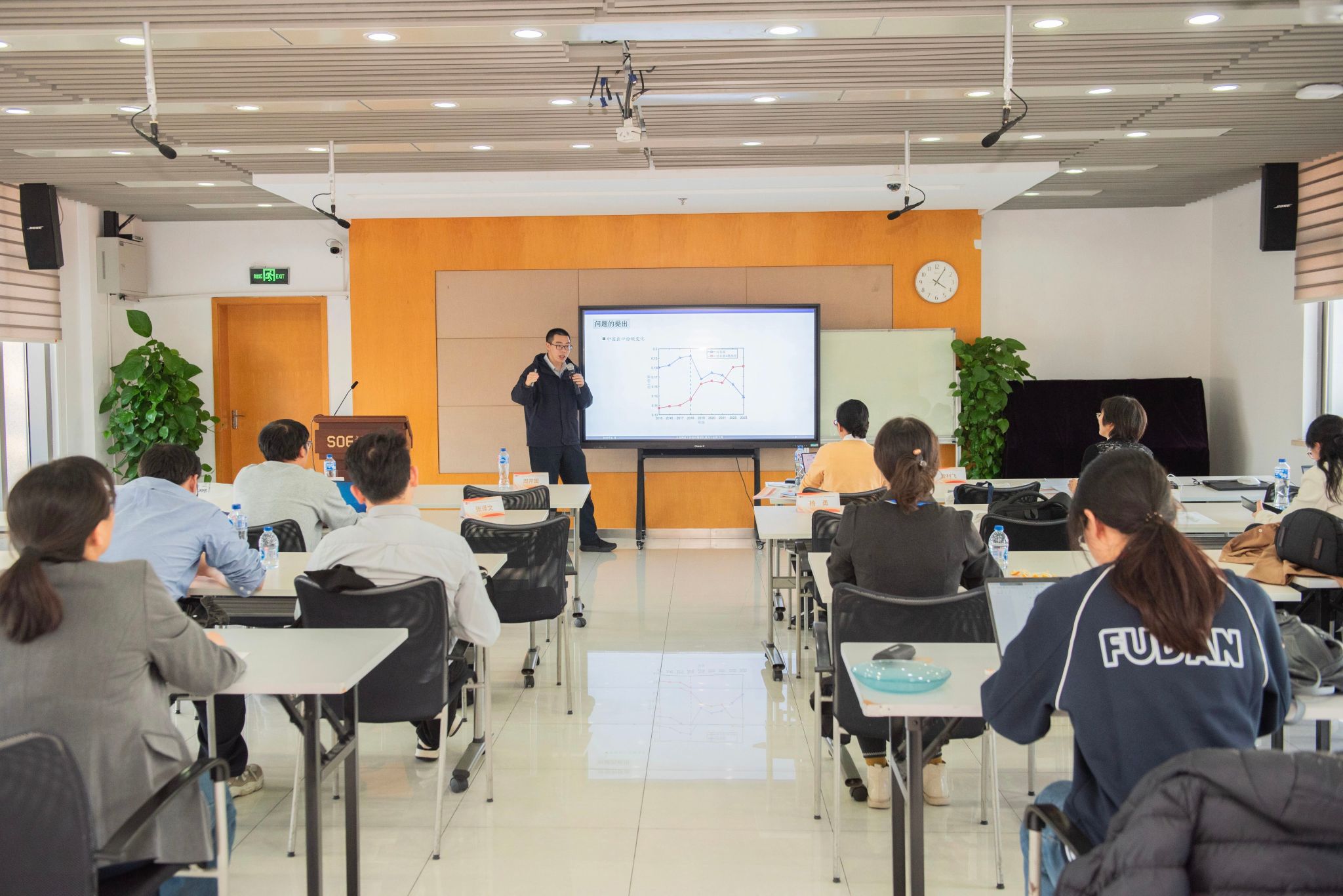 杜在超主持及点评,刘辰月、郭书剑作了论文汇报。