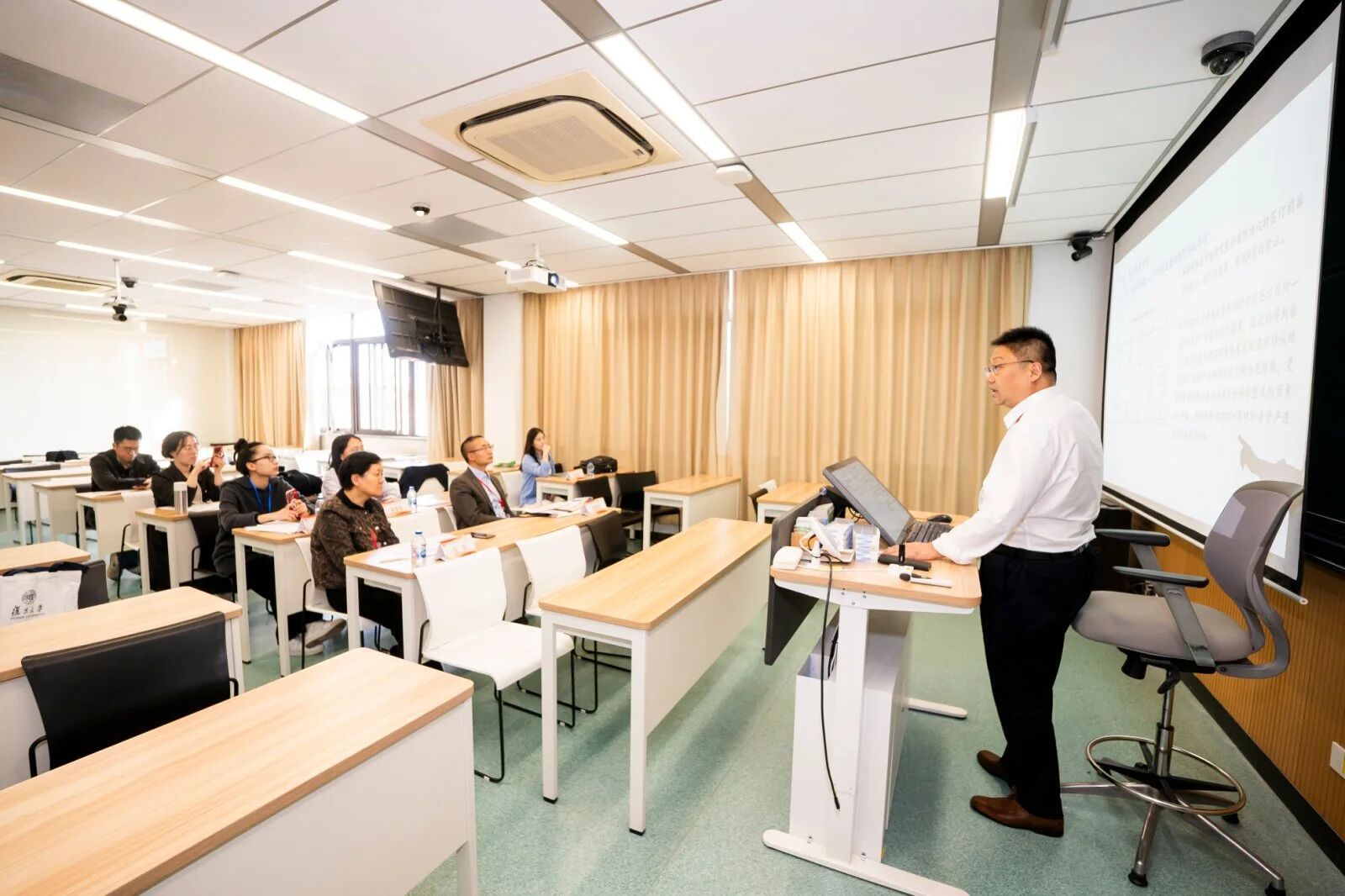 王熙麟主持及点评,王贤明、童俊耀作了论文汇报。