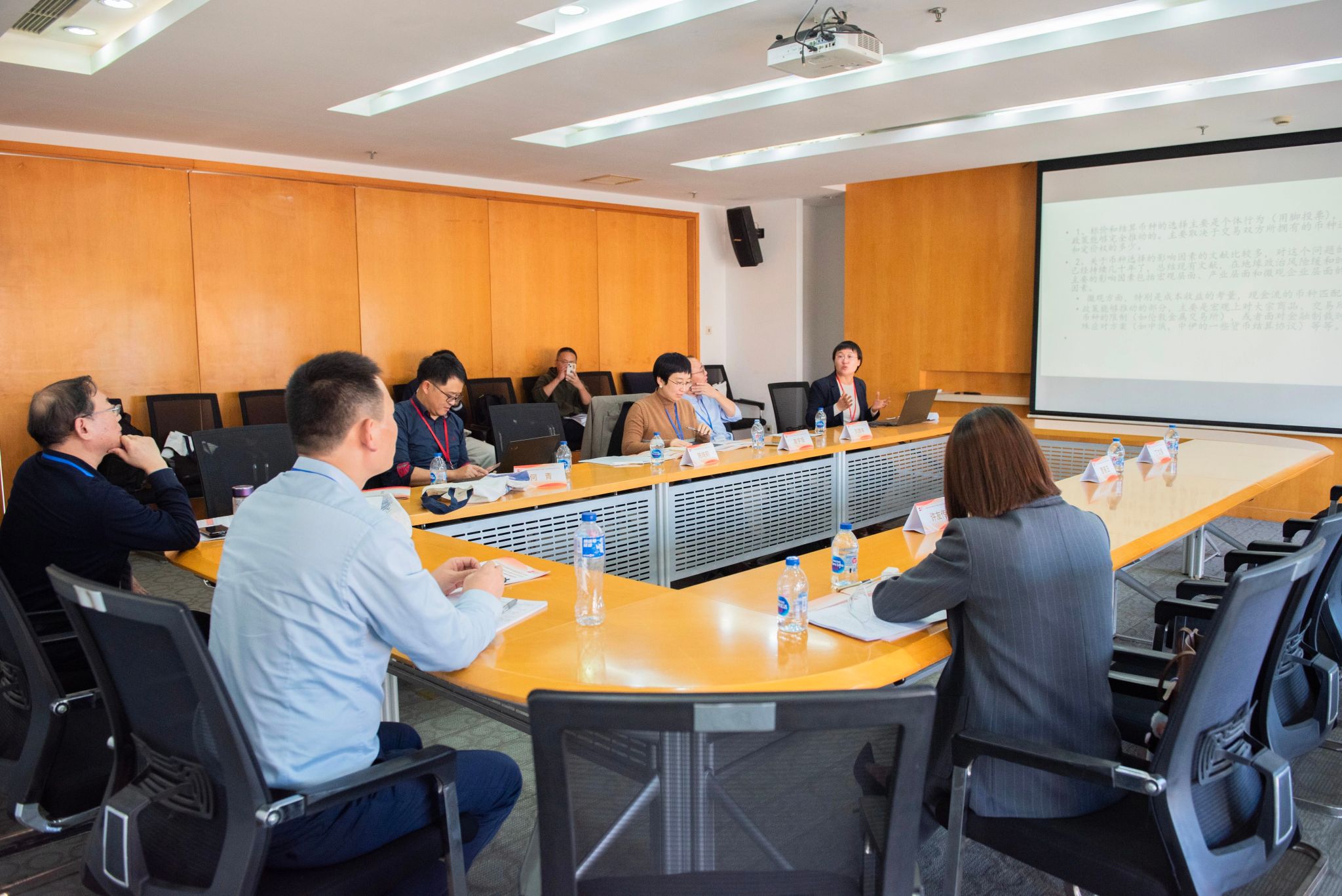 唐东波主持及点评,朱孟楠、王伟作了论文汇报。