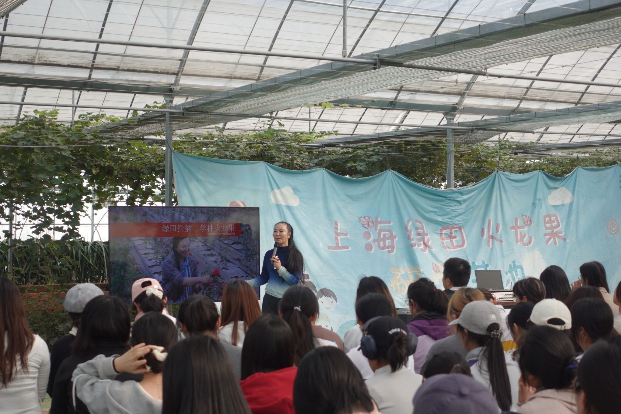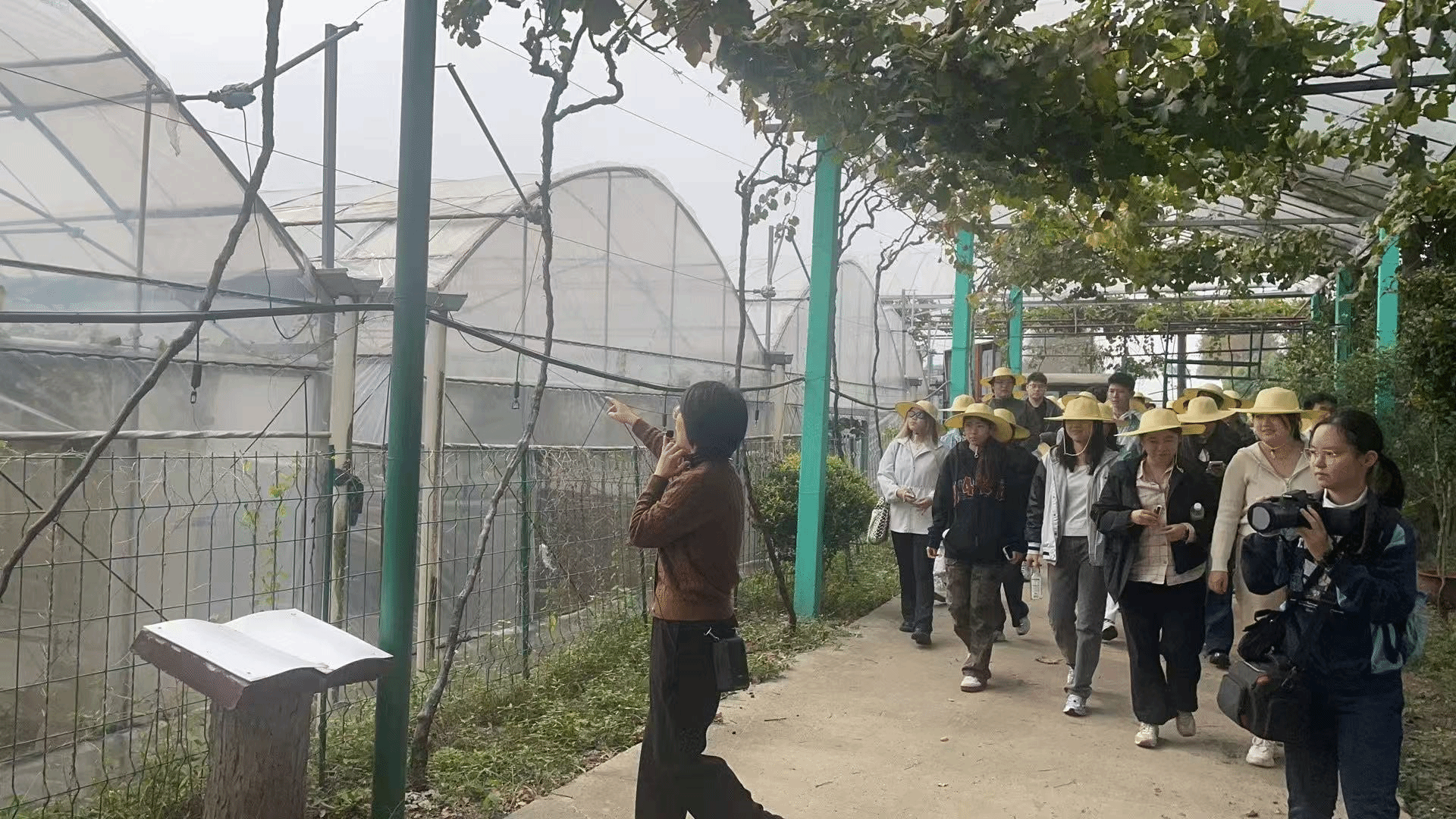 在金山吕巷镇和平村,映入24级经济数理班与UIPE班同学眼帘的,是一幅“白墙黛瓦、产业协同”的和谐画卷。曾经的“十里桃花”暂歇,显露的是乡村最本真的肌理。整齐的农民集中居住区旁,现代化的温室大棚里,热带水果正静默生长,孕育着产业社区的新可能。