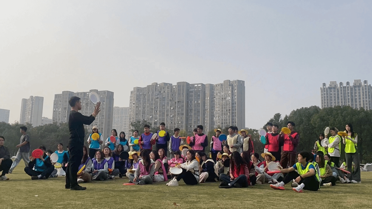 在嘉定马陆,一场别开生面的团队素质拓展在紫气东来公园展开。在教练的带领下,同学们进行了紧张刺激的飞盘竞赛和欢乐无限的躲避球游戏。飞盘在空中划出青春的弧线,欢呼与笑声中,大家增进了解,深化凝聚,为实践注入了满满活力。