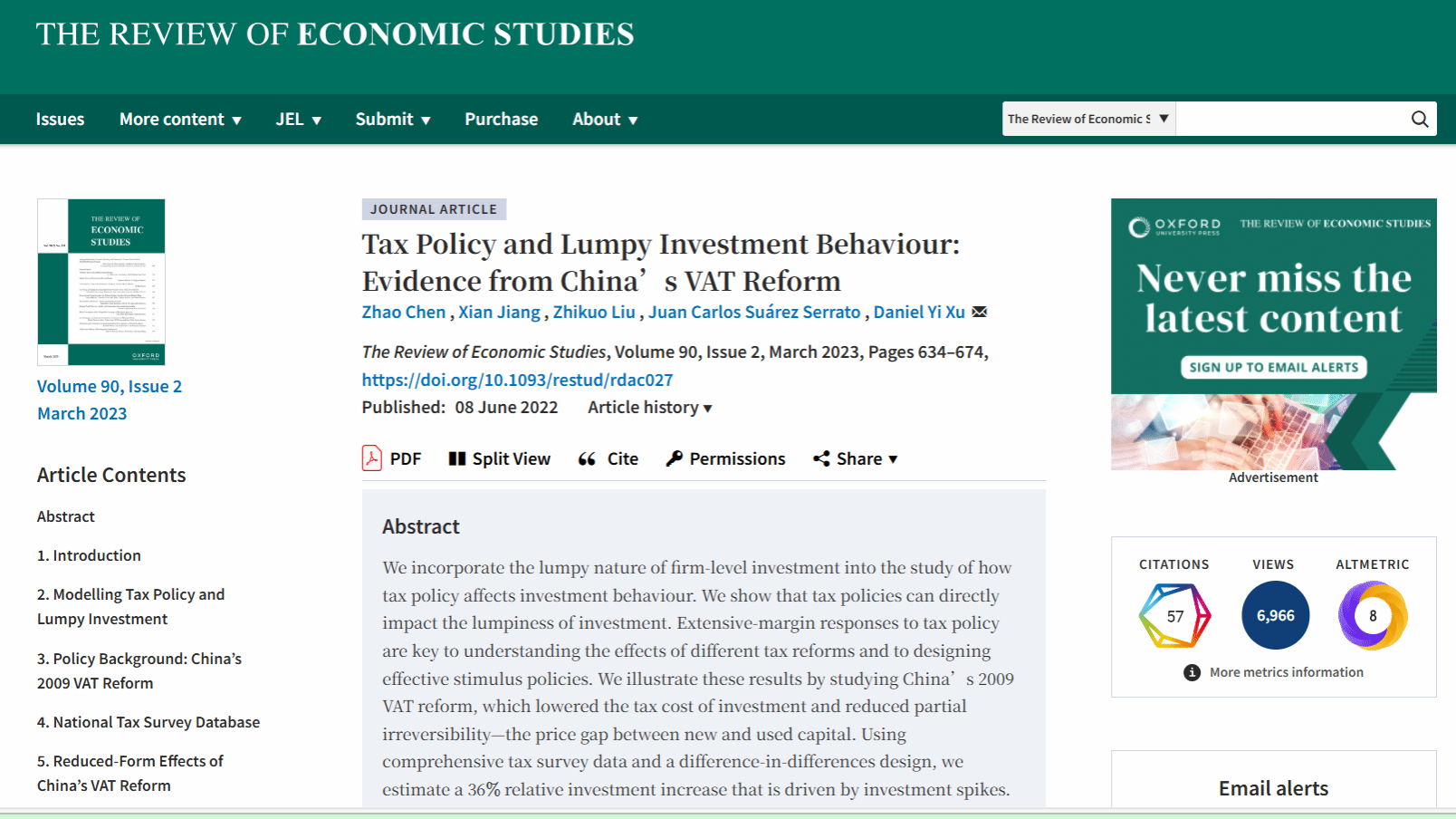 他们登上全球舞台。陈钊、刘志阔等的合作论文“Tax Policy and Lumpy Investment Behaviour: Evidence from China’s VAT Reform”发表于国际一流经济学期刊Review of Economic Studies,于2025年斩获上海市第十七届哲学社会科学优秀成果一等奖,使复旦的国际学术话语权迎来跨越式提升……