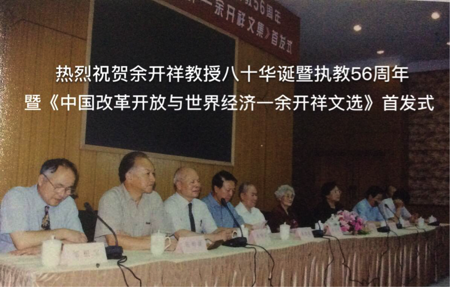 余开祥教授的一生是一个中国共产党党员、知识分子爱国敬业、忠诚奉献的一生,他在革命、建设和学术生涯中的贡献为我们留下了永恒的宝贵财富。追随余开祥教授和其他老一辈经济学家给我们开辟的道路,继续发展世界经济学科、投身国家建设大业,正是对余开祥教授最好的纪念和追悼。