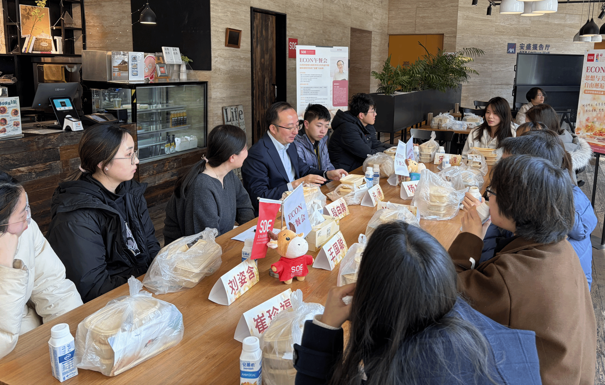 泛海楼二楼咖啡厅如期举行。本次活动以“与风险管理与保险学系主任共进午餐:解码保险学科的‘宝藏’与未来”为主题,由风险管理与保险学系副主任段白鸽老师主持,并邀请了风险管理与保险学系主任许闲老师作为分享嘉宾。老师们与不同年级的学生围坐一堂,以轻松交流的形式畅谈保险行业发展现状、专业学习规划与职业发展方向。本次座谈会聚焦保险专业的发展前景与学科优势,旨在加深学生对保险专业的认知理解,为大一学生专业分流提供有益参考,同时搭建师生深度沟通的桥梁,凝聚专业发展共识。