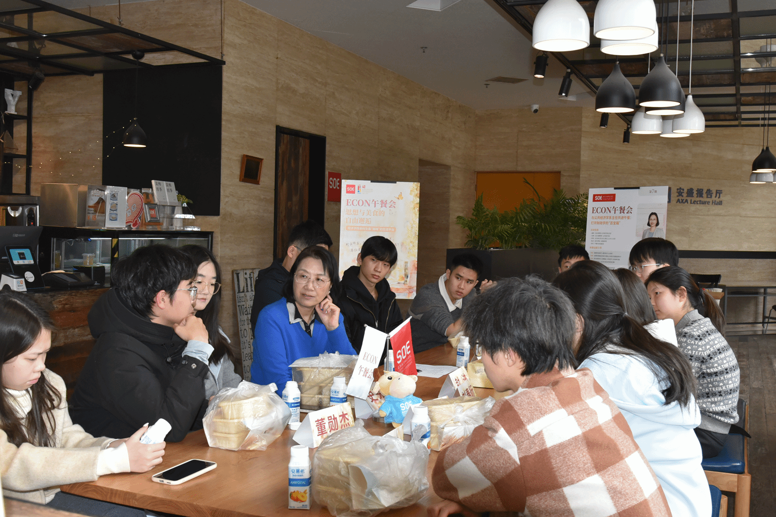 第七期“ECON午餐会”在学院二楼咖啡吧如期举行。本期活动特别邀请了公共经济系系主任封进教授担任主讲嘉宾,并由王贞副教授主持,与学院各年级学子围坐一堂。在轻松的午餐氛围中,师生们围绕财政学的前沿视阈、科研入门路径以及低年级职业规划等话题展开了细致深入的交流。活动旨在通过面对面的沟通,帮助同学们打破对学科的刻板印象,在真实社会治理逻辑中找到学习的动力。
