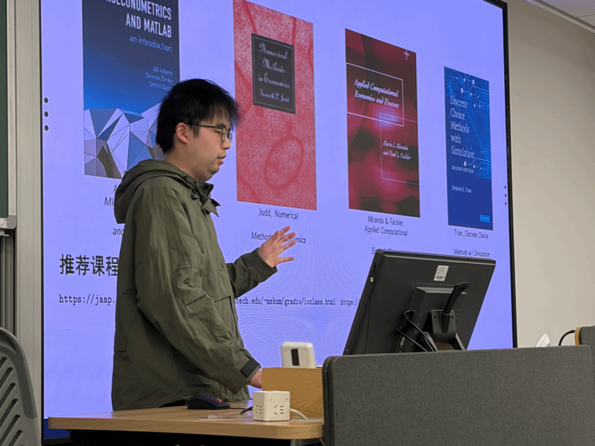 在书目推荐上,彬朝学长结合自己主攻国际贸易与产业组织、偏理论与定量分析的方向,给出了参考书单。理论层面:MWG的《微观经济理论》是博士生必读,需逐字研读;Kreps的讲义比MWG更细,直觉解释丰富,更友好;奥斯本和鲁宾斯坦的《博弈论》侧重公理视角,其中的冷门知识点(如合作博弈)或许能成为论文的创新落脚点。计量方向:Bruce Hansen的著作可作为核心;AI时代无需深钻Stata指令,基础操作加AI辅助即可。国际贸易方向:建议从Handbook入手,吃透克鲁格曼等人的基石文献,Melitz模型及其扩展是重要研究方向。宏观方面:Stokey和Lucas的经典著作必须攻克;苗建军的《Economic Dynamics in Discrete Time》兼顾量化入门与深层理论,是学习复杂模型的好起点。