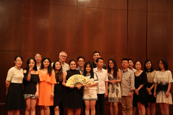 伴随着18名学生合唱的《送别》,师生及助教们纷纷合影留念,依依惜别。