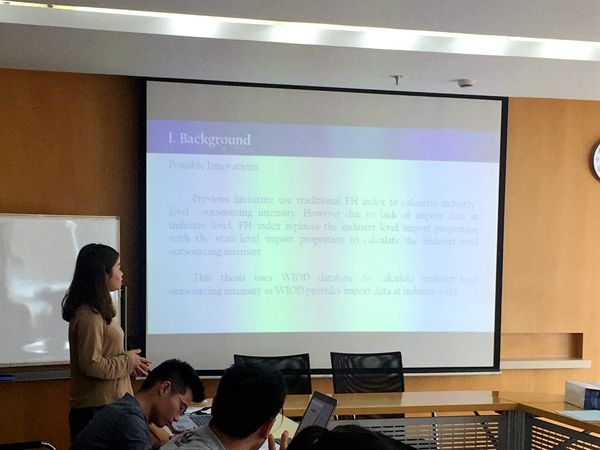 的教授联合组成:包括复旦经院的程大中教授、黄亚钧教授、吴力波教授、陆寒寅副教授;巴黎一大的Lorenzo Cassi教授和Biagio Speciale教授。2016届本项目的14位中国籍研究生和3位外籍研究生参加了此次答辩。