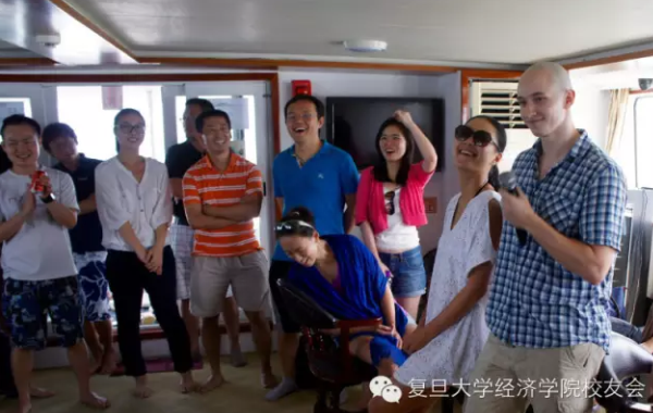 在游船开往沙滩途中,校友们继续互动,K歌能手纷纷献唱,桌游玩家不乏奇招,还有帅哥美女们在游船顶层于海风中谈笑风生。