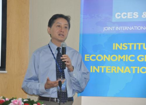 中国社会主义市场经济研究中心副主任殷醒民教授致开幕词,他指出当今世界日新月异,经济和金融制度也在不断发展变化。自2008年全球金融危机以来,大家都试图寻找出更加完善的经济、金融制度,以适应经济、金融环境的变化,有效控制金融市场的风险,更好地促进经济发展。因此,本次会议的主题为制度、经济发展与国际贸易,旨在通过学术报告和交流探讨,集思广益,全面剖析制度和经济发展、国际贸易之间的关系,以利于提出一些适应当前经济、金融环境的行之有效的改革建议。