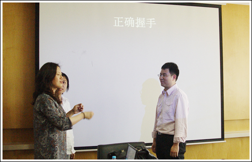 外国留学生工作处张怡副处长为全体行政人员进行了一场“日常接待礼仪”的培训讲座。