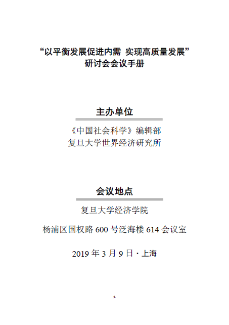 主题:“以平衡发展促进内需实现高质量发展”研讨会