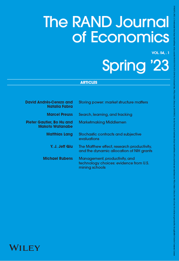 The Rand Journal of Economics》创刊于1984年,由美国著名智库兰德公司主办,主要发表微观经济理论、产业组织领域的学术论文。该期刊是产业经济学领域的国际顶级期刊,每年仅发表高水平学术论文40余篇,在相关领域内具有重要影响。