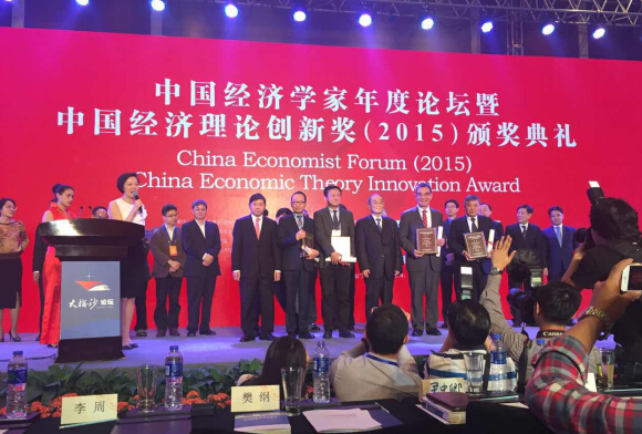 院长张军与著名经济学家林毅夫、樊纲共同获得中国经济理论创新奖(2015)。张军教授出席颁奖典礼并发表演讲。