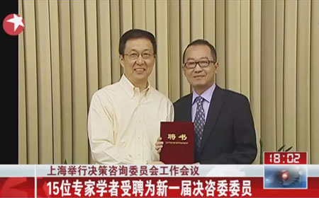 上海市决策咨询委员会工作会议于2013年10月9日上午举行,上海市委书记韩正为新一届市决咨委委员颁发聘书,张军教授受聘为新一届上海市决咨委委员。