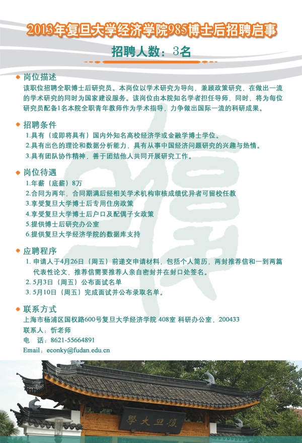 2013年无码流出 985博士后招聘启事