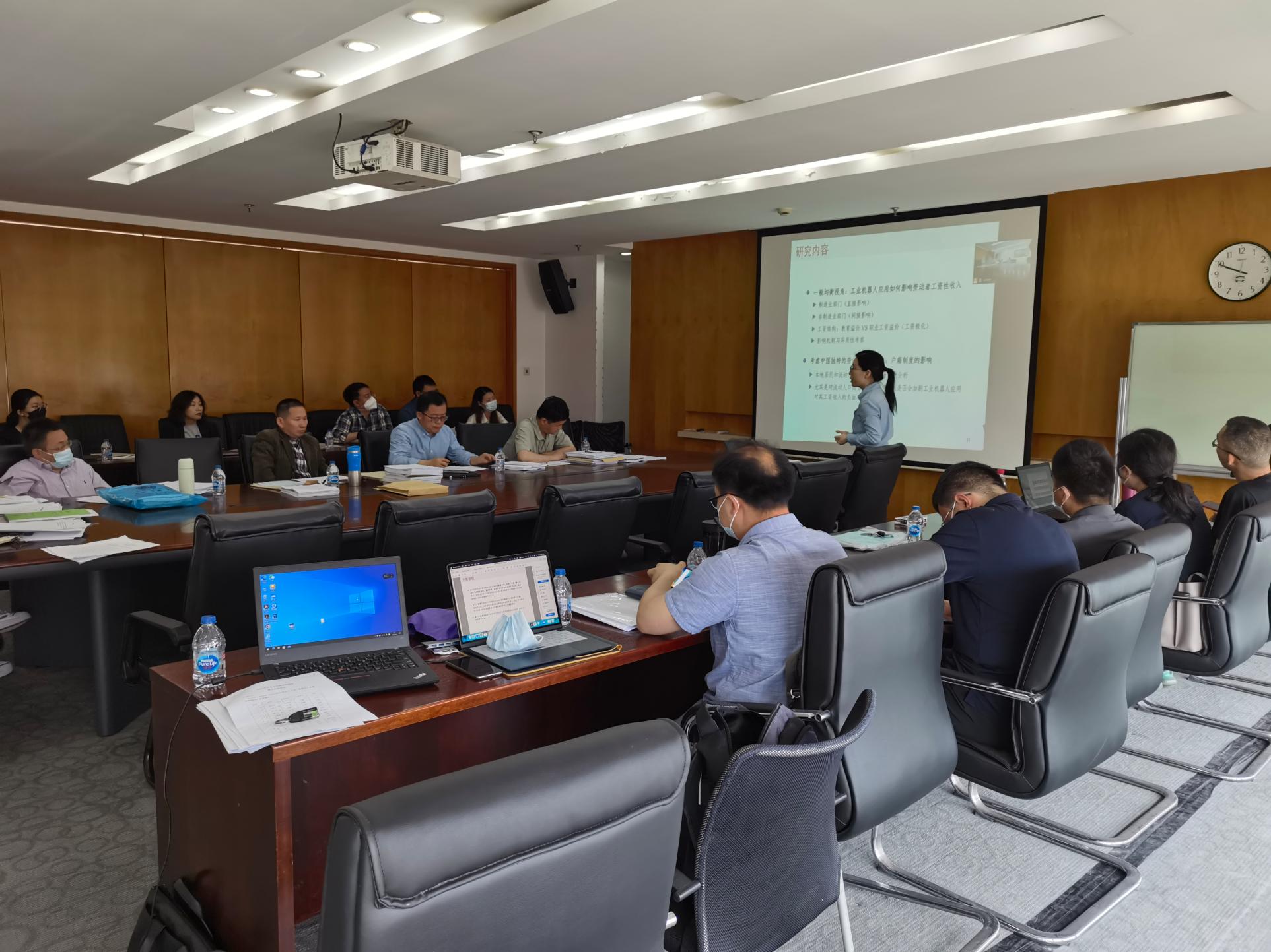 在本次汇报中,吴超、王杉、徐清、张文闻、陈鸣、张雪琴、祁毓、董雯、叶伟九位博士完成了题为《中国经济高质量发展:理论与实证》、《中国式现代化基本经济制度质量量化研究——基于制度系统性视角》、《中国企业跨国并购的动因、绩效及其影响因素研究》、《“双循环”背景下的人民币离岸金融市场发展研究》、《贸易冲击与要素市场变动:产业关联和动态生产方式视角》、《当代资本主义金融化与经济停滞理论研究》、《中国环境公共事务治理之道:目标、监督与激励》、《新一轮科技革命对中国劳动力市场的影响研究》、《提升人民币SDR权重目标下的人民币跨境结算研究》的出站汇报工作。