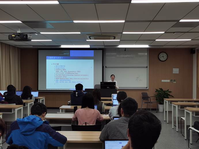 毕业论文写作过程中的文献检索和数据搜集也很关键。段老师为同学们精心罗列了中外文文献的官方网站,以及各种与保险相关的数据库,详细介绍了搜集数据的方法,并用实际操作向大家展示如何充分利用学校图书馆资源、知网大数据平台、名家学术主页、谷歌学术搜索等查找数据和引用高质量的研究文献。她告诉大家要引用高水平的文章,提高自己的研究品味(taste)和毕业论文的研究价值。同时段老师还特别指出,很多时候数据质量会影响到研究的结果,因此对于各类数据要充满好奇心,谨慎使用数据,注意数据清洗和交叉验证,来保证数据和模型的可信度。