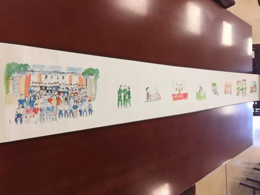 心灵手巧的顾凌同学,用近两个月时间绘制的这幅长卷,是二十年聚会最珍贵的礼物,于是,有关1994级经济学系的故事,就随着那长卷展开了,校门上欢迎新生的横幅是母校给我的第一声问候,军训的新生,舞蹈的女生,耍酷的男生,宿舍、教室、食堂三点一线的大学生活,古老校门与毛主席像的复旦地标,还有那一大块一大块的绿草坪,我拼命去想这个故事的主题,脑海中只剩下了美好这一个词。