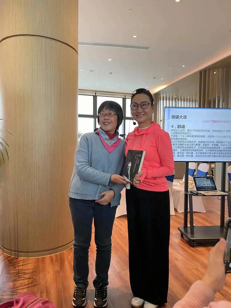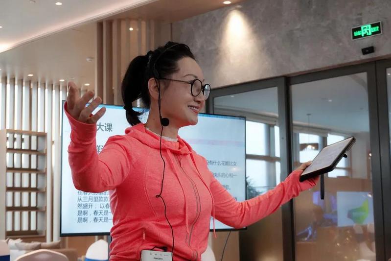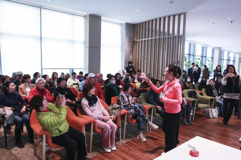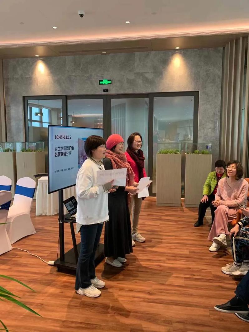 曾经作为上海广播电视台的著名主持人,肖亚老师富含磁性的独特嗓音伴随了很多60后和70后的成长,成为一代人的美好回忆。作为这次活动之文艺赏析板块的重点,肖亚老师给大家上了一堂精彩的“声音艺术”课,分享了自己在朗诵上的心得,带领大家练习了“前后鼻音和平翘舌”的绕口令,最后还朗诵了诗歌《三月女人花》,大家近距离感受了名嘴的声音魅力。